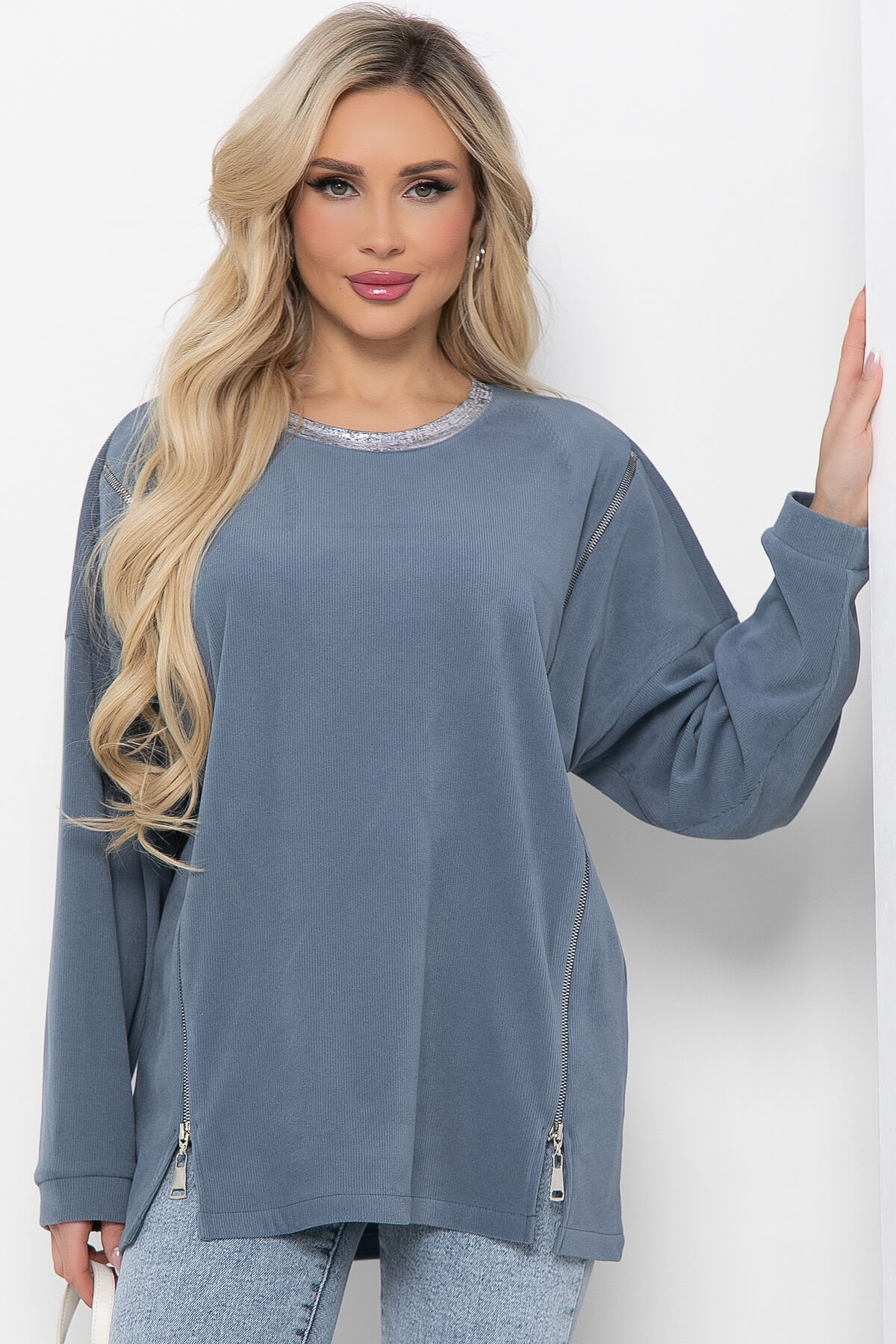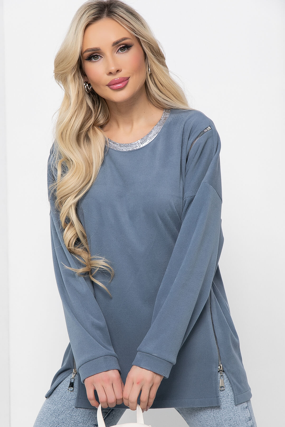 Комфортный и практичный джемпер с функциональными замками по бокам. Округлый вырез акцентирован серебристой горловиной. Длинный рукав со спущенной линией плеча. Такой трикотажный джемпер отлично будет смотреться как с джинсами, так и с брюками. Свободный крой позволит чувствовать себя уютно на прогулке, не сковывая ваших движений.