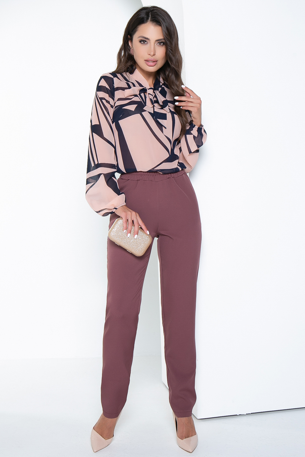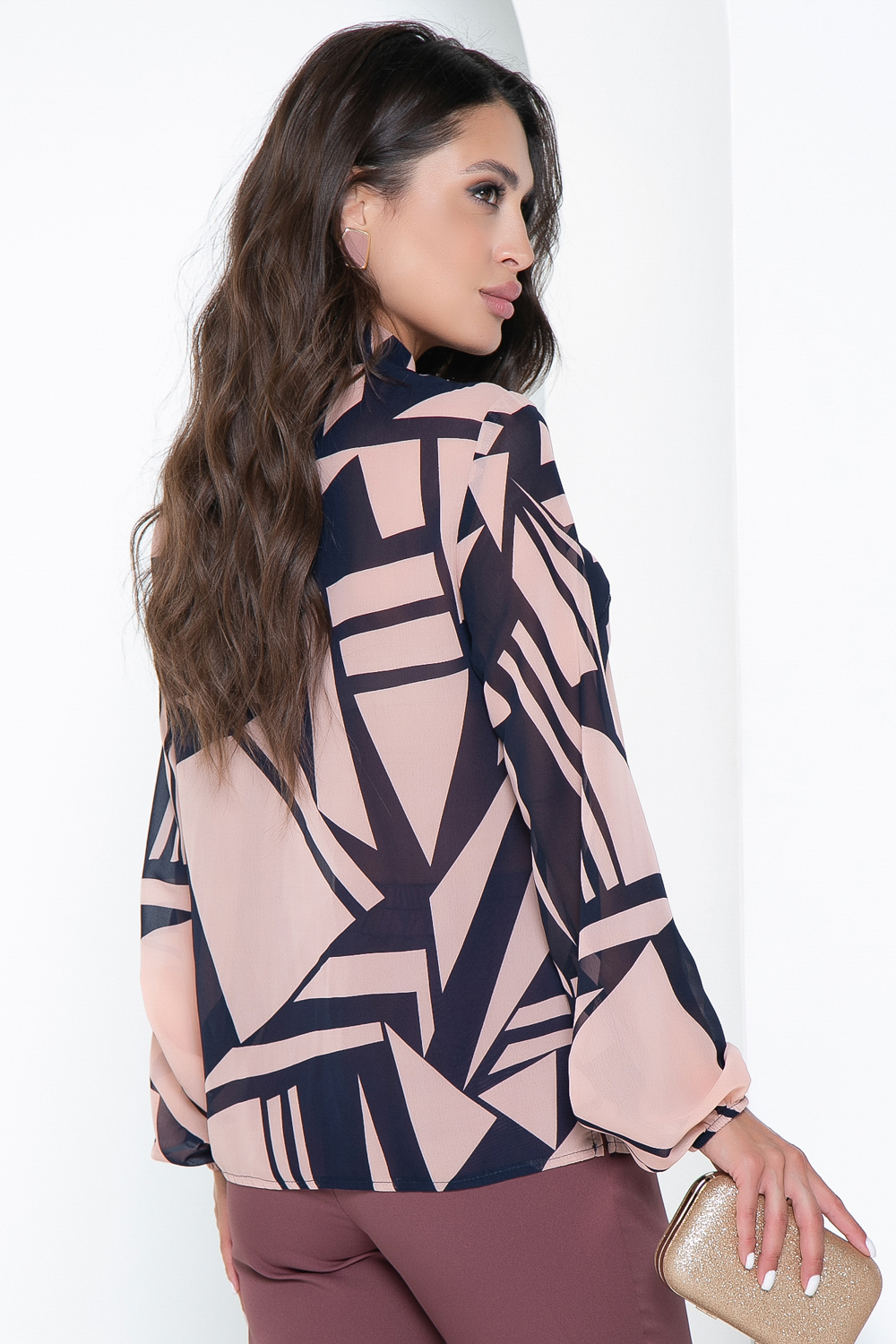 Блуза "Мэри" (пудра, геометрия) Б2626