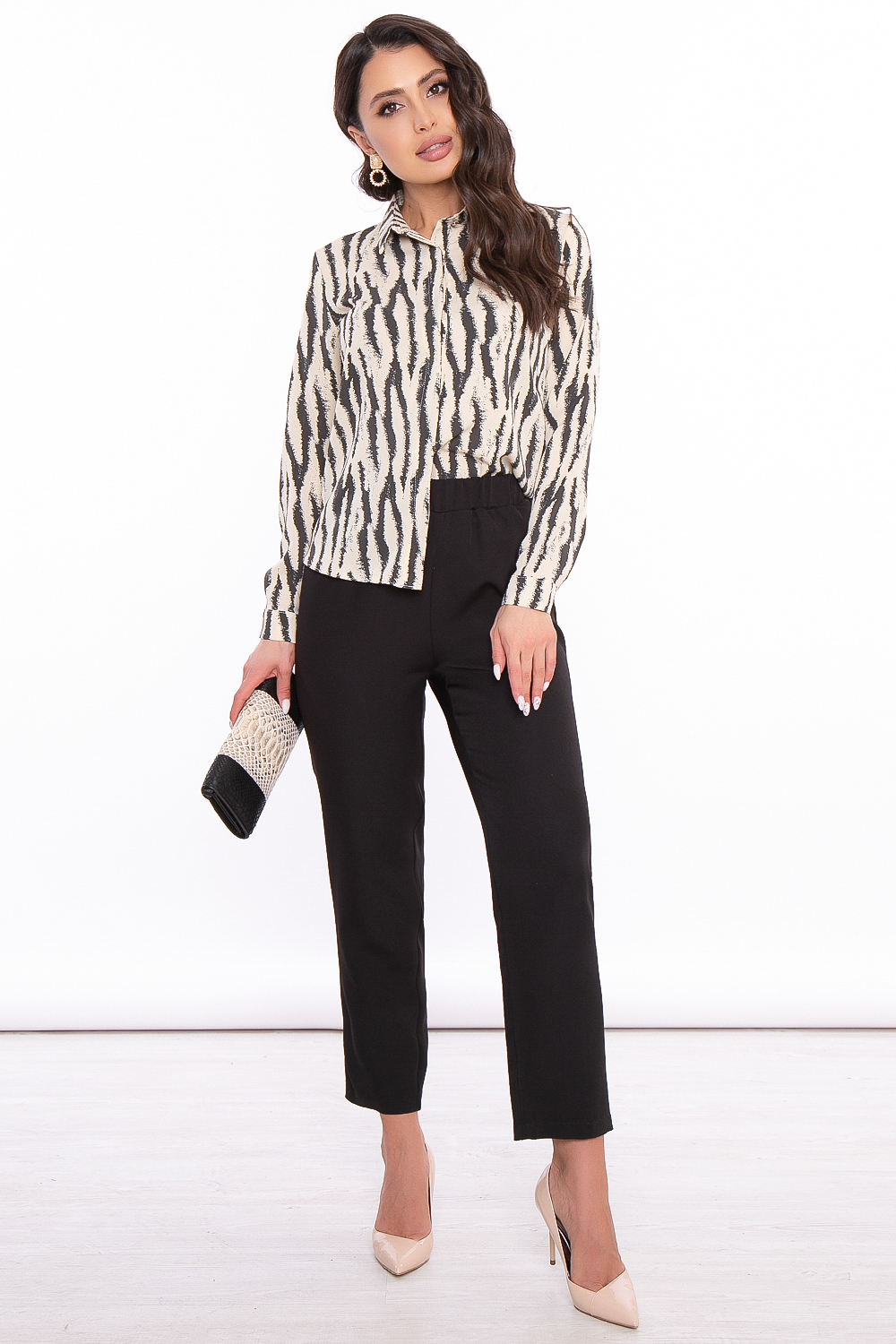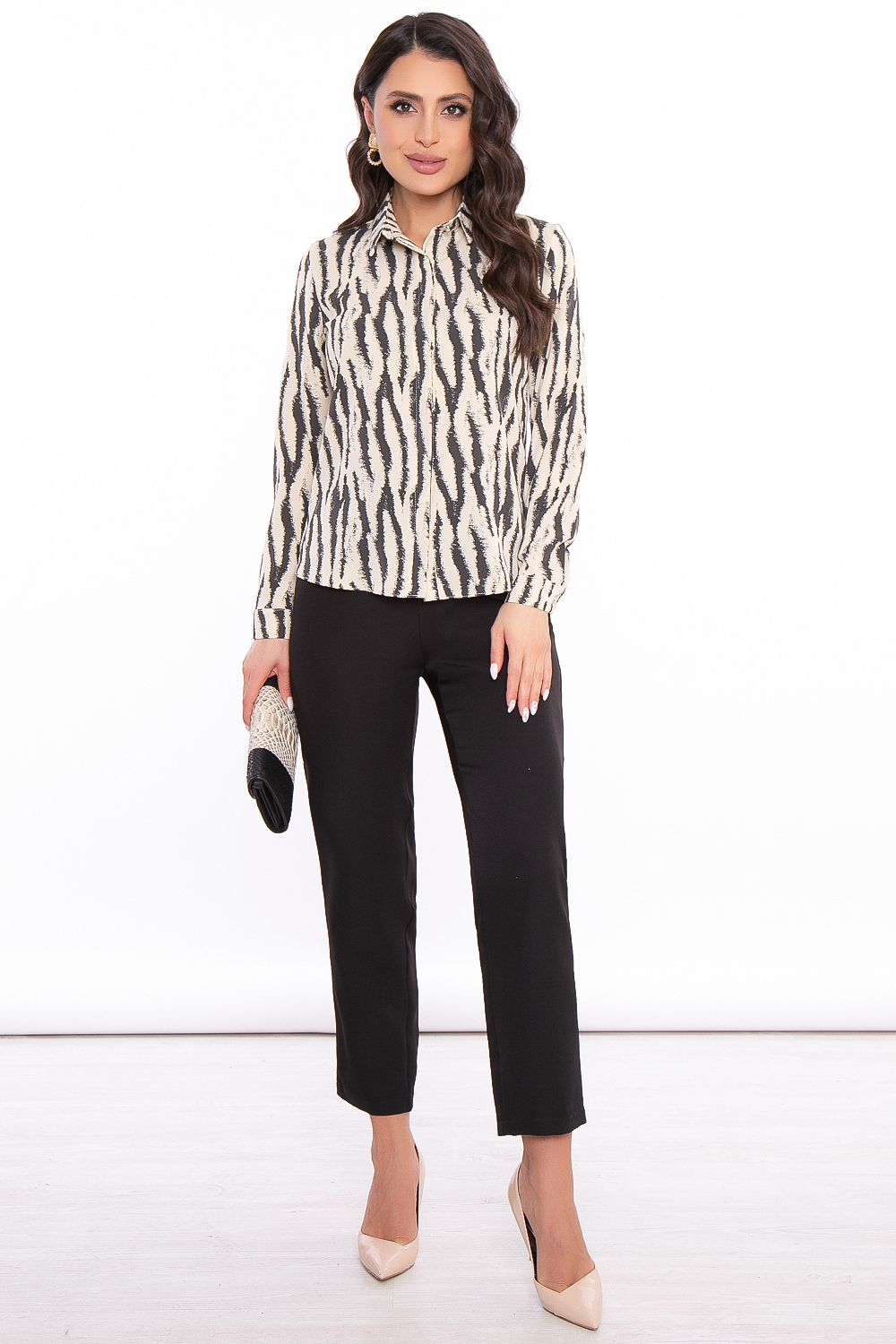 - Универсальная блуза приталенного силуэта выполнена из приятной к телу ткани;