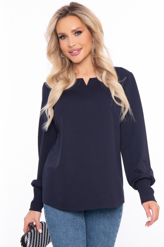 Базовый джемпер в классическом тёмно-синем оттенке с красивым акцентом в виде галочки на вороте.