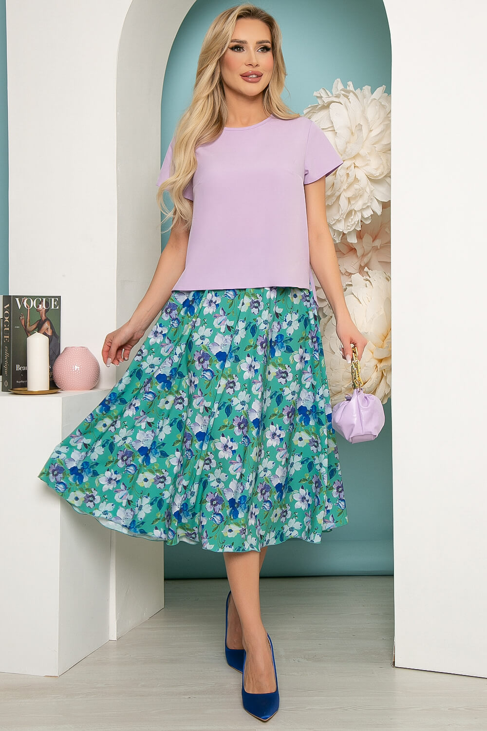 Очаровательная блуза в нежной расцветке. Блуза свободного кроя. Мягкий, округлый вырез горловины, рукав короткий, втачной. По бокам разрезики, спинка удлинена.