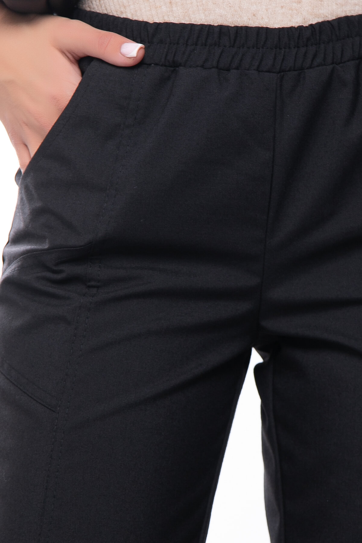 Классические прямые брюки в классическом чёрном оттенке помогут Вам в создании изящных официальных образов. Брюки по талии оснащены резинкой, что позволяет добиться комфортной посадки по фигуре. В боковых швах есть карманы. Брюки подойдут для офисного и повседневного образа. Они не сковывают движений и выглядят стильно и лаконично, Вам останется только подобрать верх.