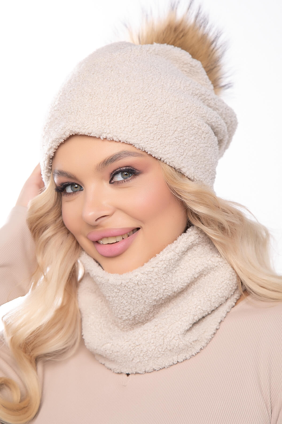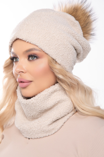 Комплект шапка с помпоном и снуд (беж) ШПС10