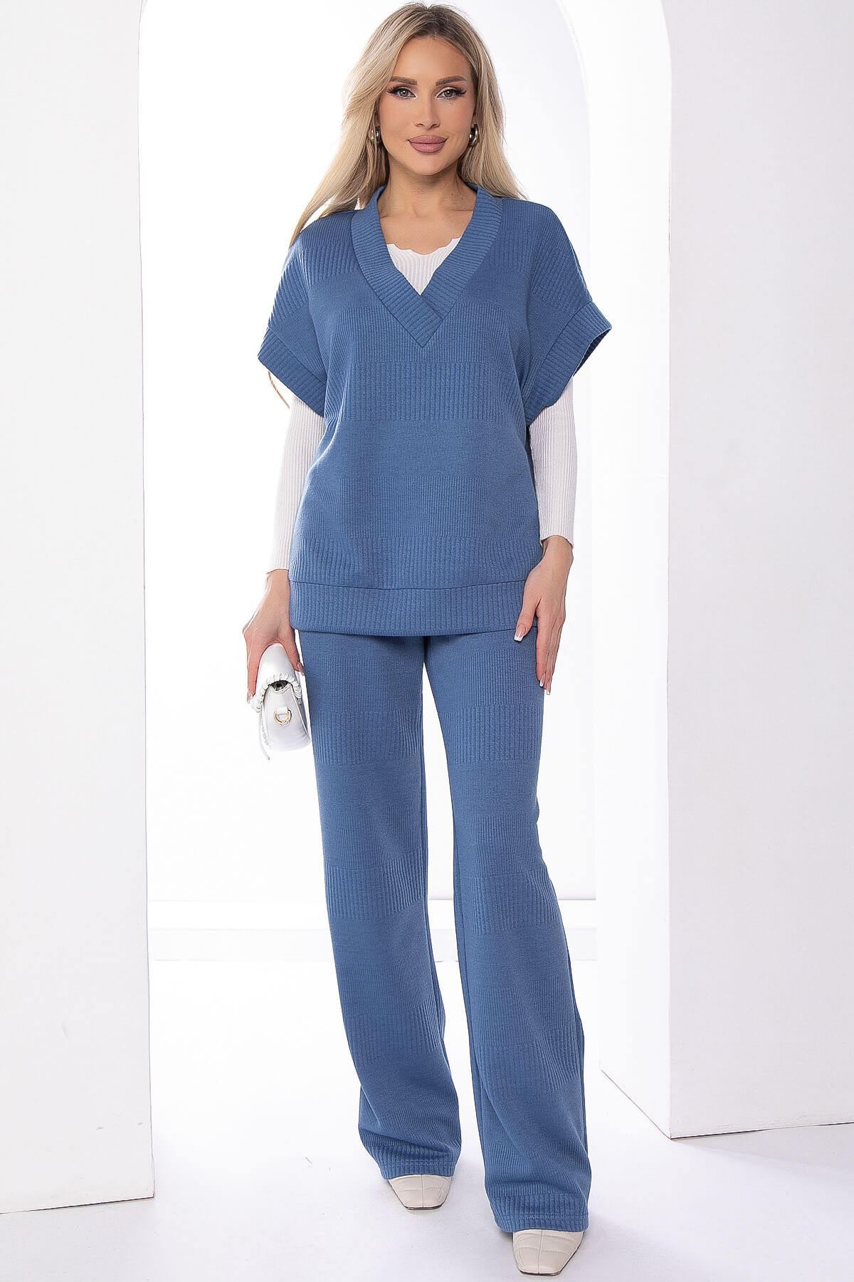 Костюм-двойка, состоящий из прямых брюк с высокой посадкой на резинке и жилета свободного кроя. Преимущество комплекта в том, что вы сможете самостоятельно носить как жакет, так и брюки. В повседневном образе смело сочетайте с лоферами или ботинками, а если нужен более официальный образ, с туфлями на каблуке.