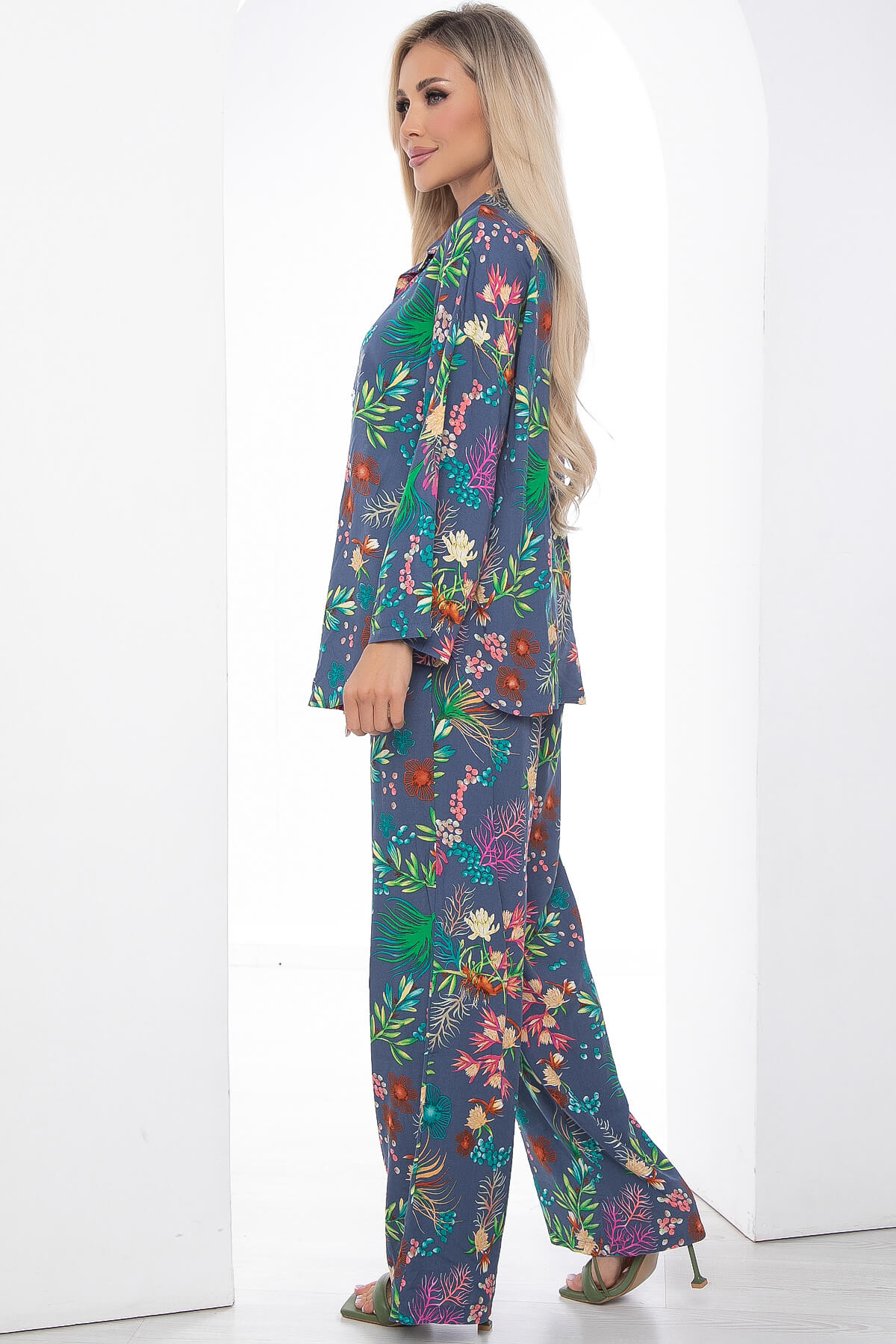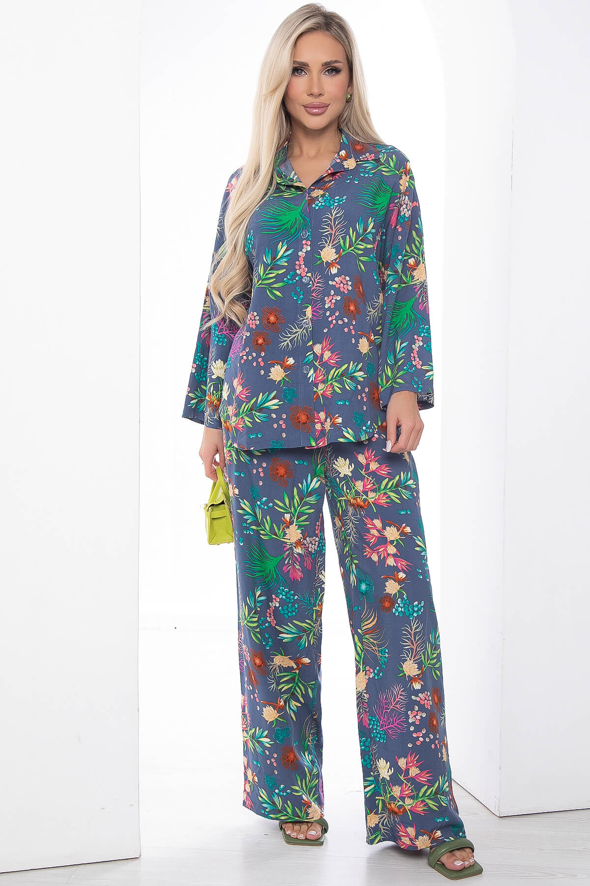 Костюм из лёгкой ткани, состоящий из свободной рубашки и брюк, идеально подойдёт для летнего расслабленного образа. Свободный крой не сковывает движений и дарит комфорт. Рукав три четверти, со спущенным плечевым швом.