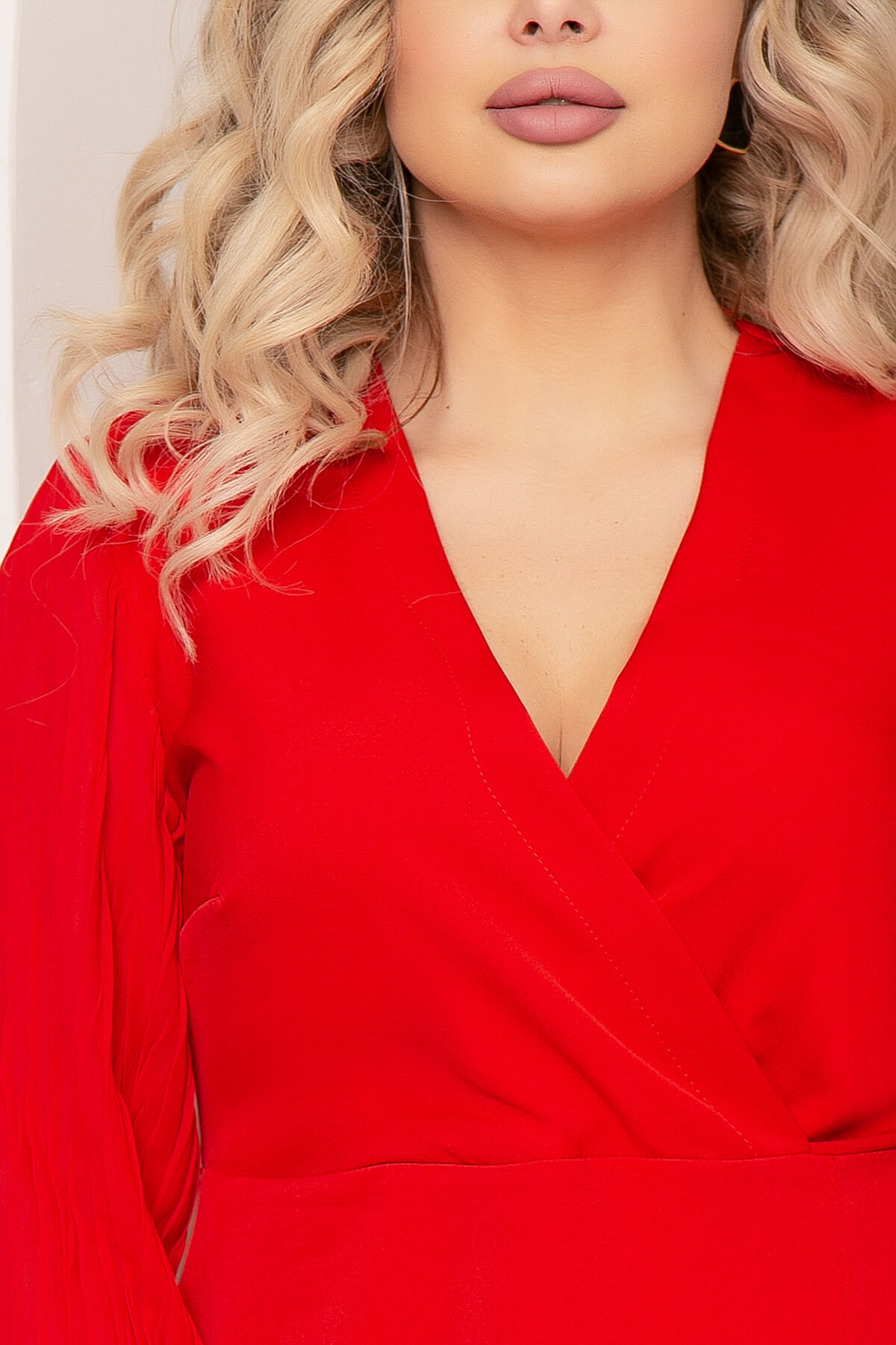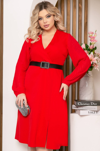 Женственная модель платья из костюмной ткани с объёмными плиссированными рукавами. Такое платье позволит создать красивый образ. Приталенный силуэт, по переду есть небольшой разрез. Рукав втачной, длинный, по низу собран на резинку. В комплект входит ремень из экокожи с пряжкой.