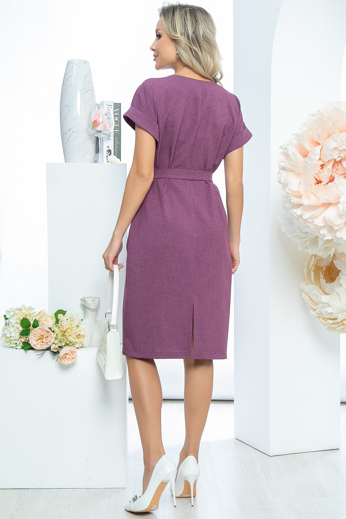 Элегантное платье свободного силуэта отлично подойдет на все случаи жизни. С таким платьем можно создать как расслабленный, так и более строгий образ, благодаря поясу из основной ткани, который входит в комплект. Рукав укороченный, цельнокроенный с отворотом.