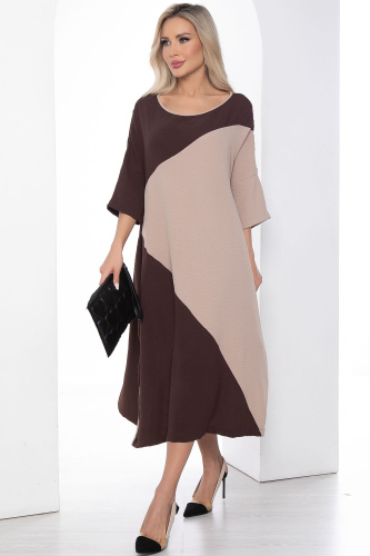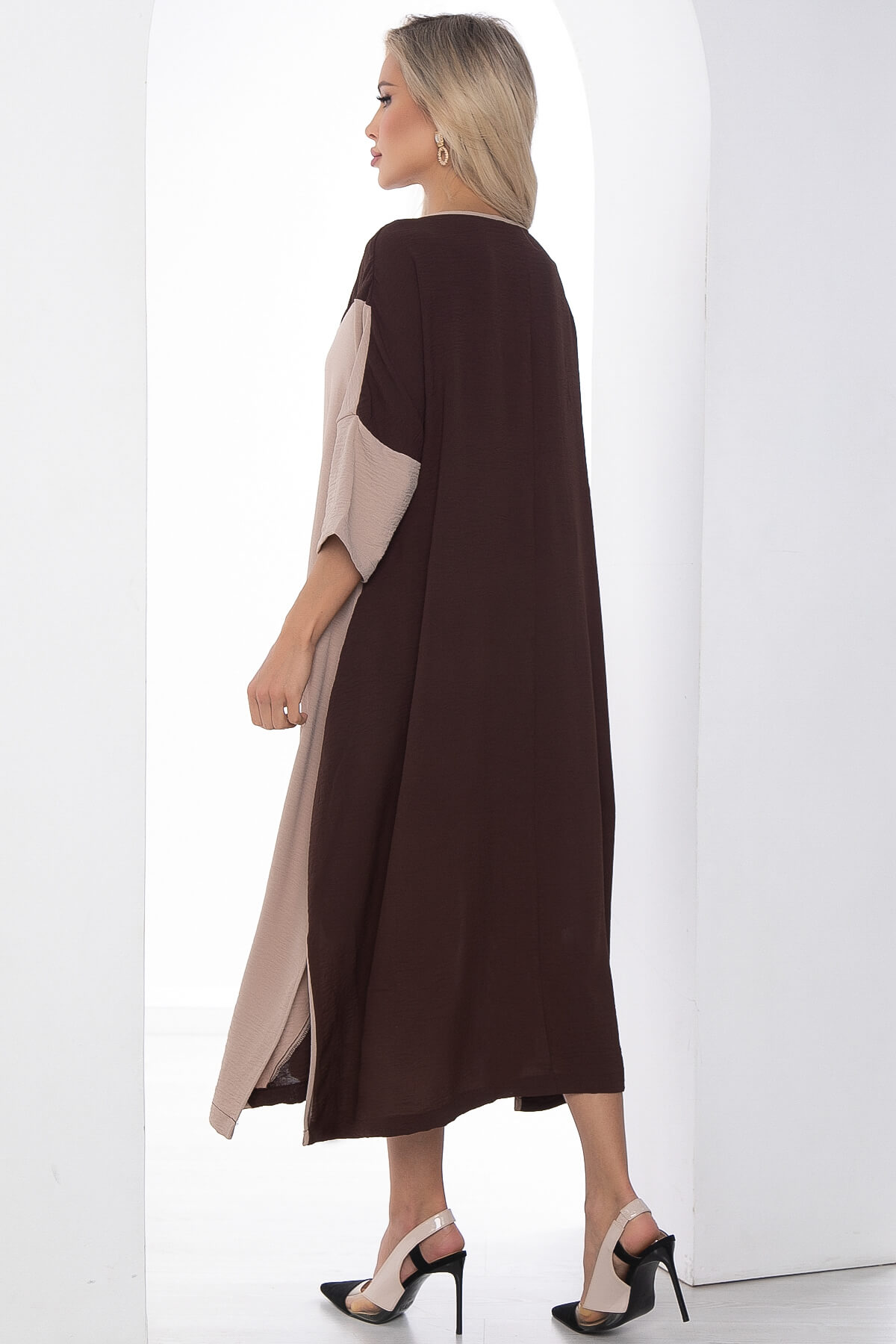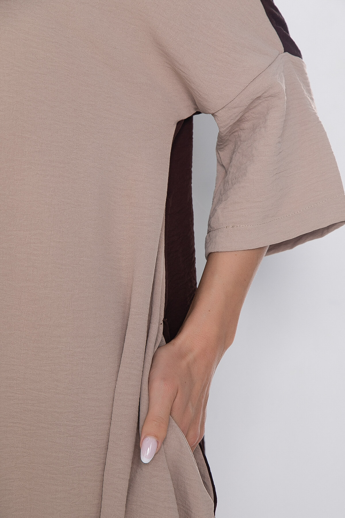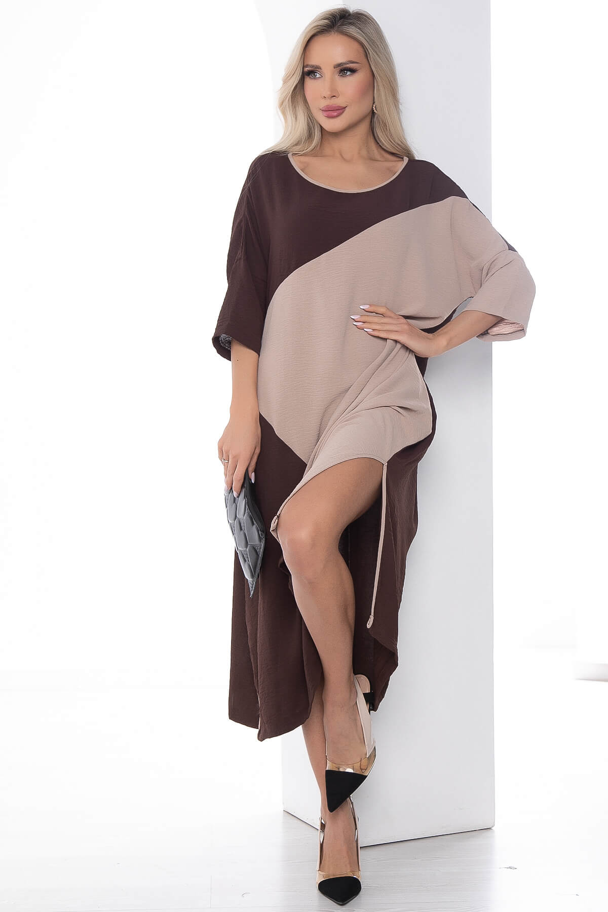 Трикотажное платье-футболка в стиле "бохо" свободного силуэта длиной выше щиколотки - отличный вариант для теплых летних дней и на работе и на отдыхе. В нем комфортно благодаря свободному силуэту, скрывающему особенности фигуры. Отделка из контрастных и разных по цвету тканей делает платье оригинальным и стильным.