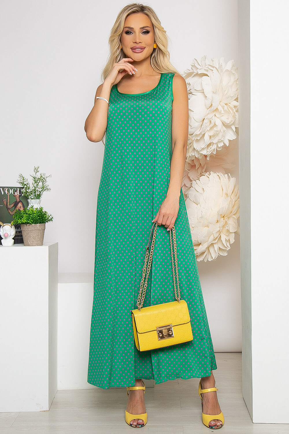 - Цвет: зелёный, принт: горошек (фуксия);