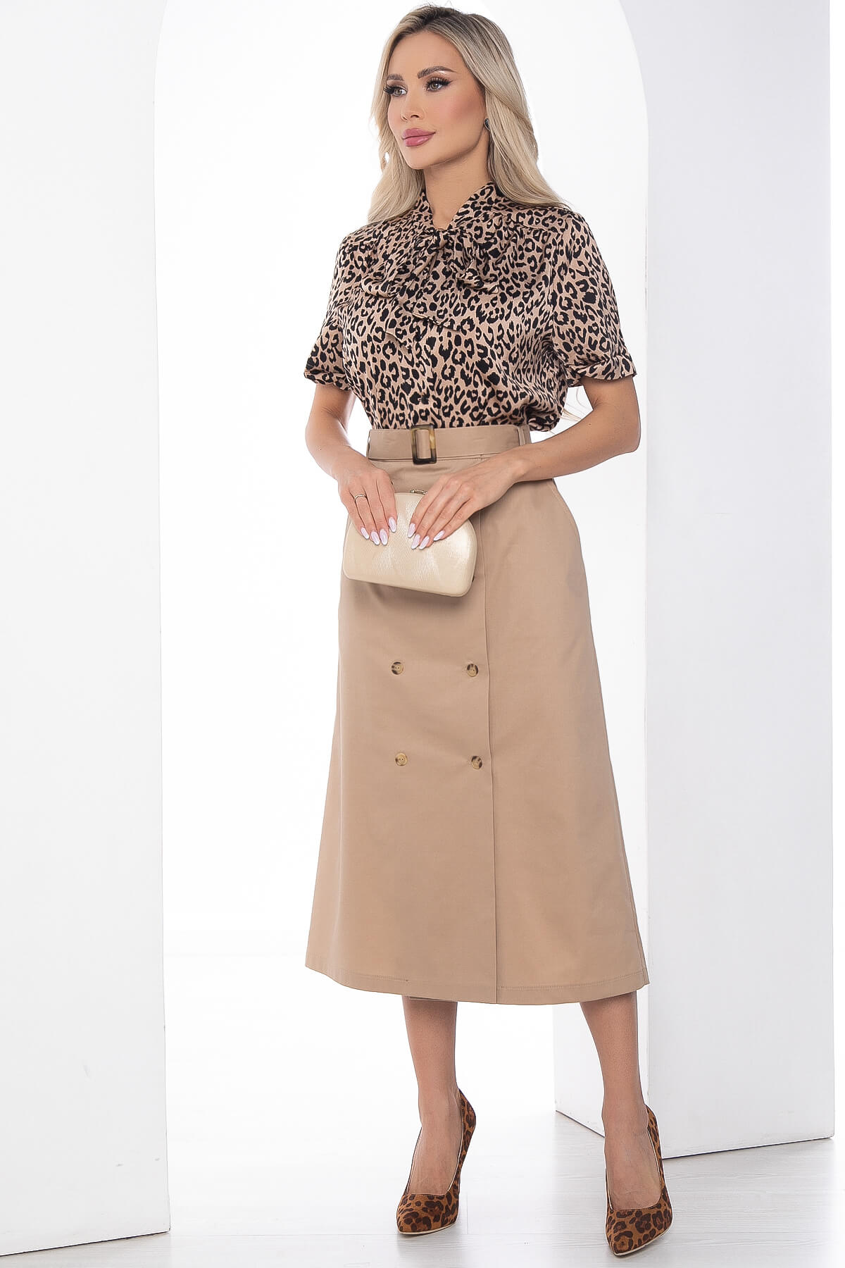 Юбка длиной миди расклешенная к низу точно не станет лишним в вашем гардеробе. Такая юбка идеально сочетается с любым вариантом верха от строгой рубашки до романтической блузки с пышными рукавами и оборками. В комплект входит пояс из основной ткани, в боковых швах присутствуют карманы.