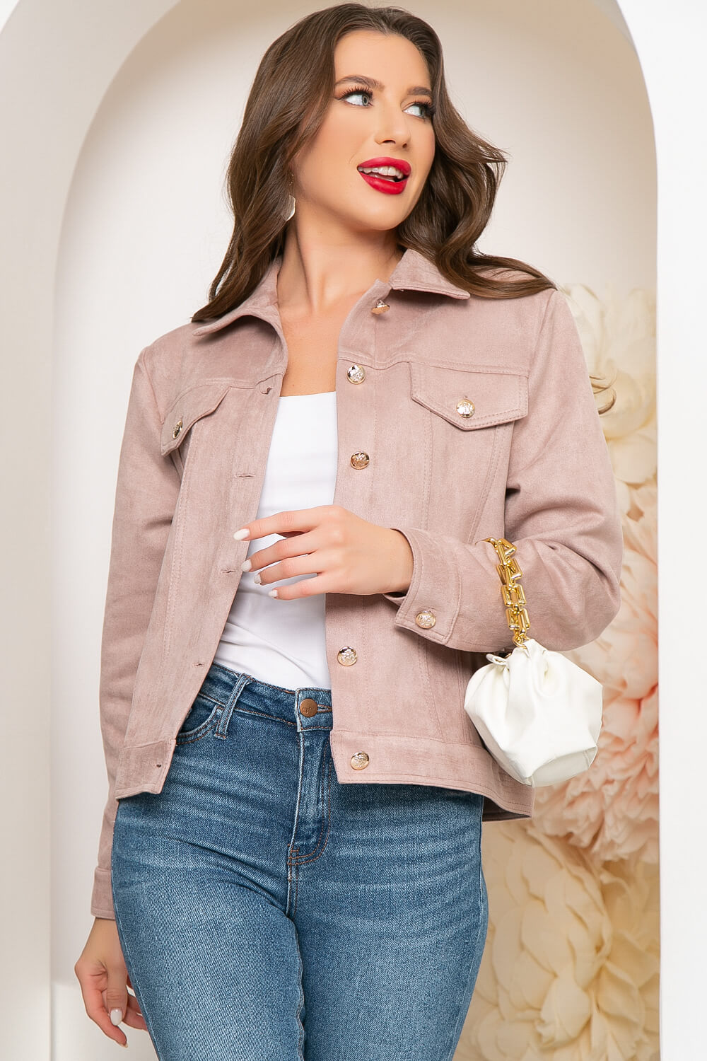 Жакет из замши в красивом пыльно-розовом оттенке украсит любой образ! Его можно надеть поверх платья, накинуть на плечи и дополнить образ с джинсами. Жакет прямого кроя, по переду застёгивается на пуговицы. По переду имитация накладного кармана. Жакет без подкладки.