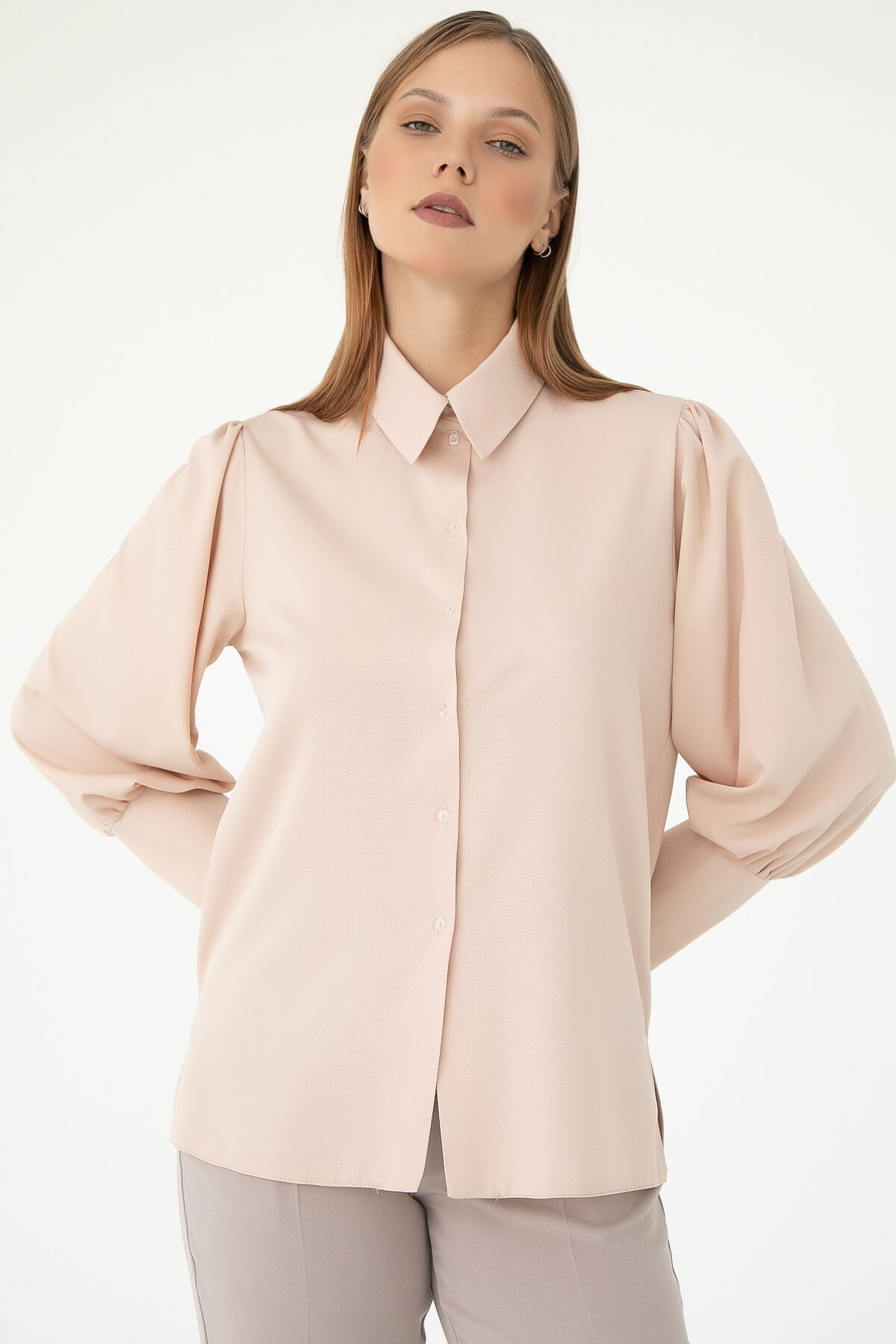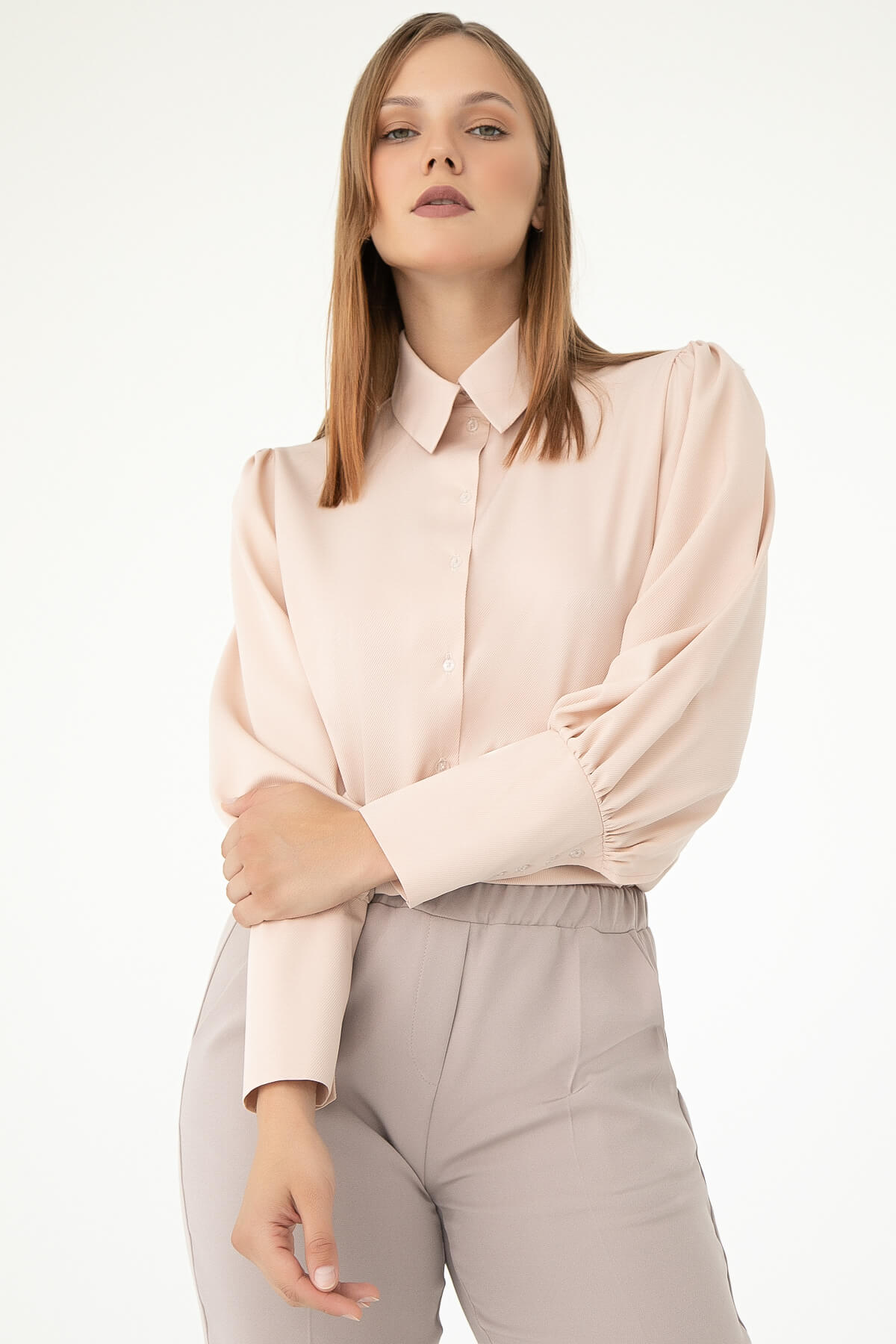 Создайте роскошный образ с невесомой блузой с пышными рукавами и высоким манжетом на пуговицах! Такая женственная вещь становится незаменимой при создании образов деловой леди, нежной дамы и яркой красавицы. Блуза отлично сочетается с прямыми брюками, джинсами и даже юбками!