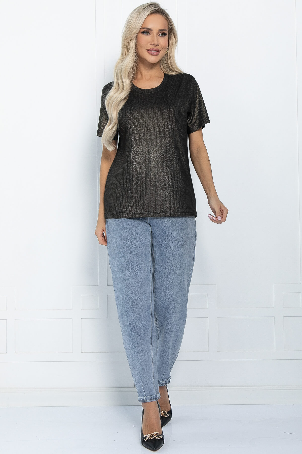 Трикотажная футболка с невероятно красивым напылением — подходит для любого времени года. Её нейтральный цвет позволяет создавать разнообразные образы — от повседневных до деловых. Она отлично сочетается с жакетами, что делает её идеальным вариантом для офисного стиля.
