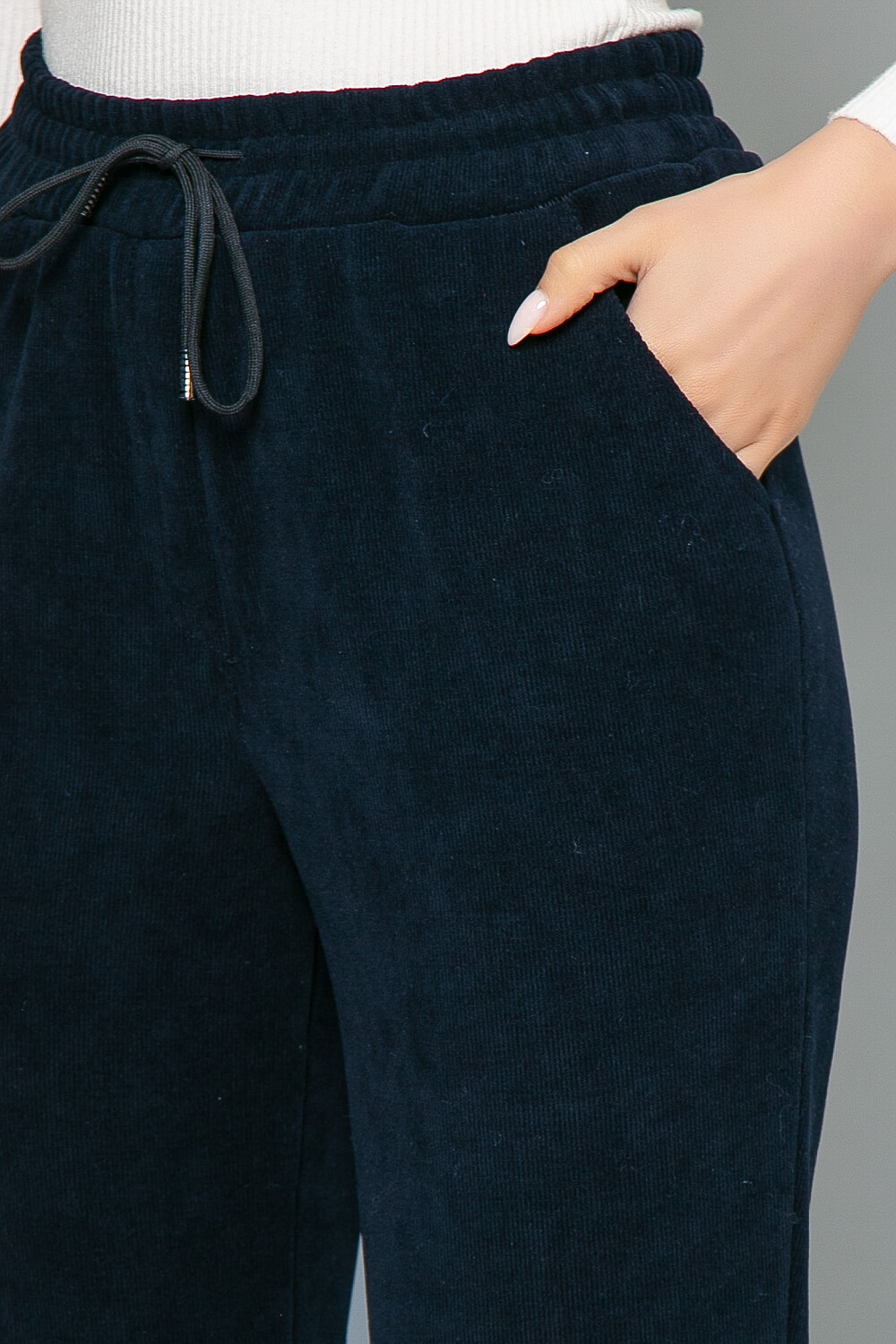 Практичные и комфортные брюки из вельвета. Резинка по низу брючин защитит от попадания ветра. Резинка на талии и зауженный крой брючин – интересное решение для тех, кто хочет подчеркнуть стройность ног. Брюки подойдут на каждый день, для офиса или прогулки. Данная модель прекрасно подойдёт на высокий рост.