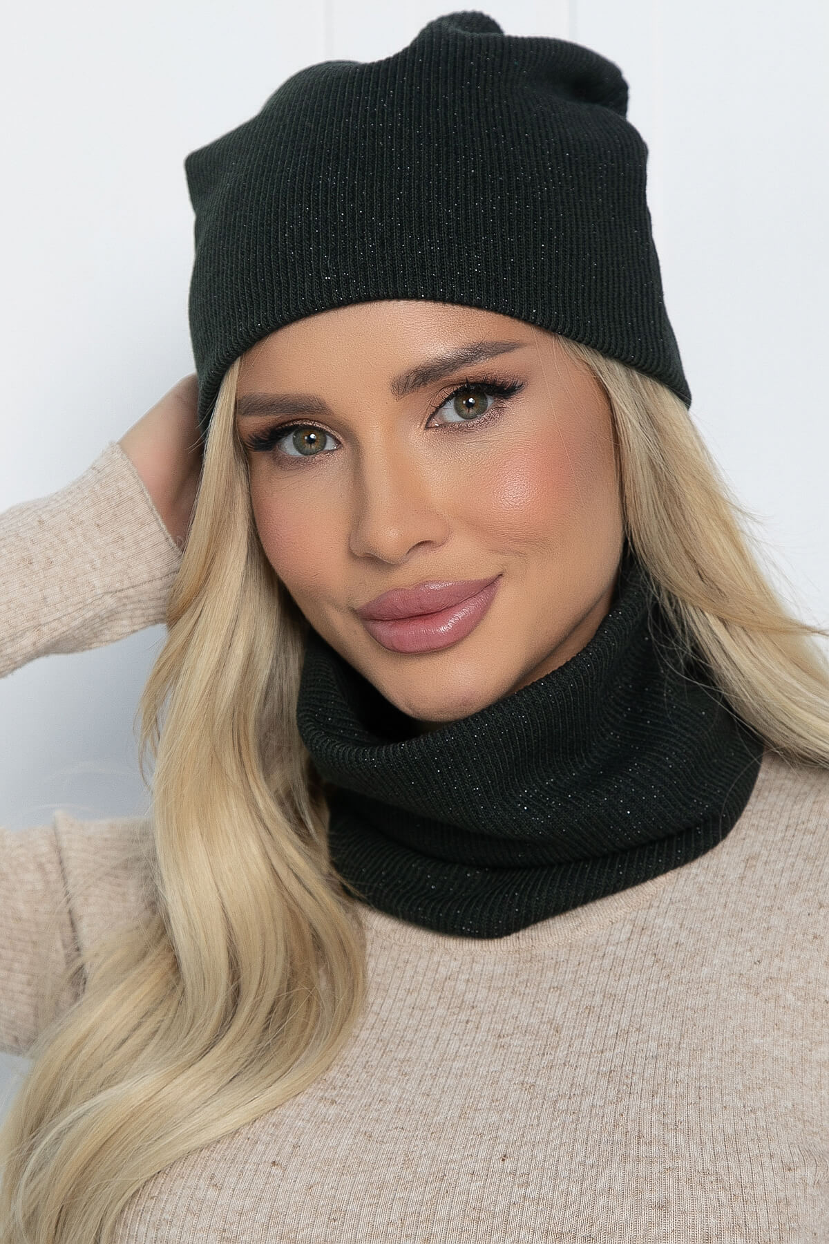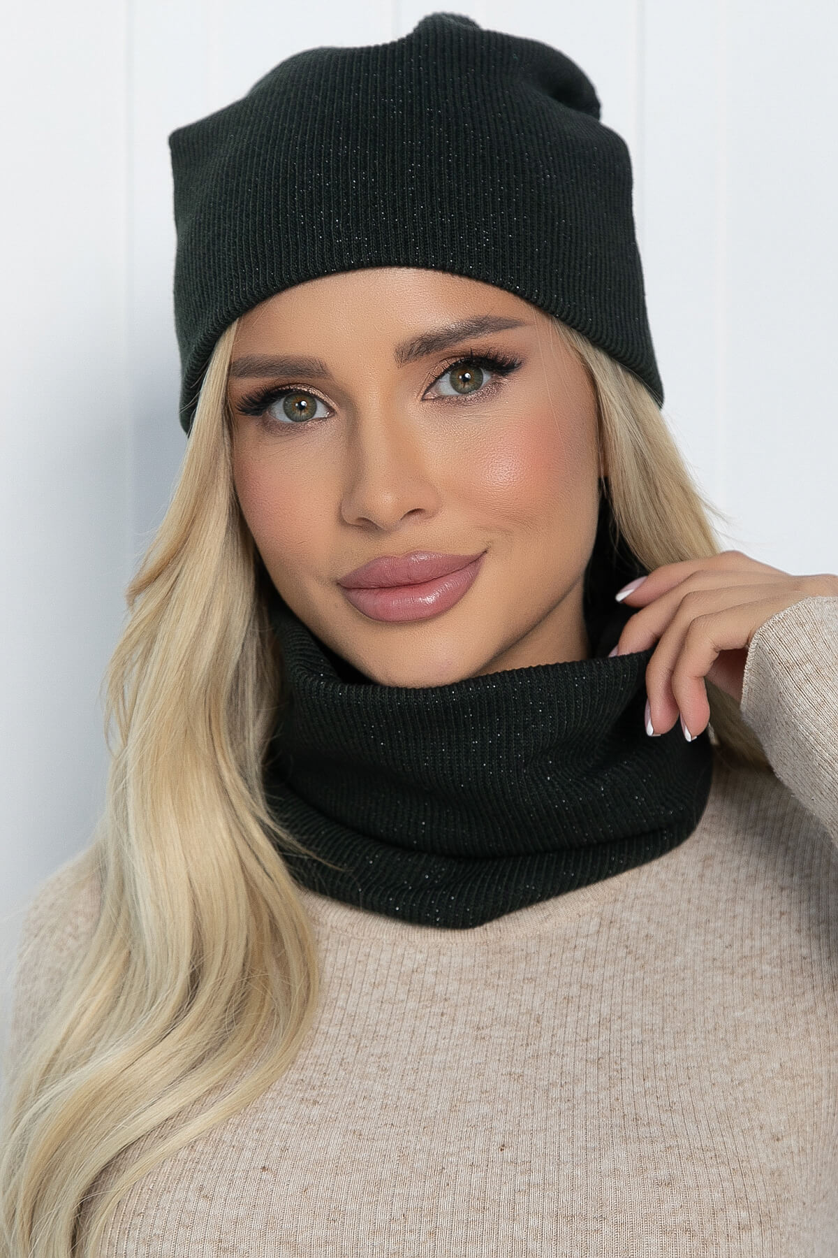 Комплект шапка и снуд (темно-зеленый) ШС29
