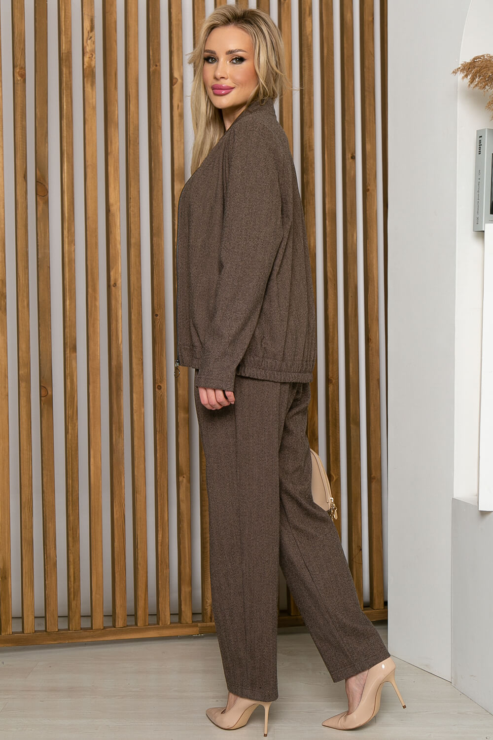 Костюм-двойка, состоящий из брюк с высокой посадкой на резинке и жакета свободного кроя на притачном поясе. Преимущество комплекта в том, что Вы сможете самостоятельно носить как жакет, так и брюки. В повседневном образе смело сочетайте с лоферами или ботинками, а если нужен более официальный образ - то с туфлями на каблуке. Костюм выполнен из плотной, мягкой ткани,поэтому прекрасно подойдёт на осенне-зимний период.