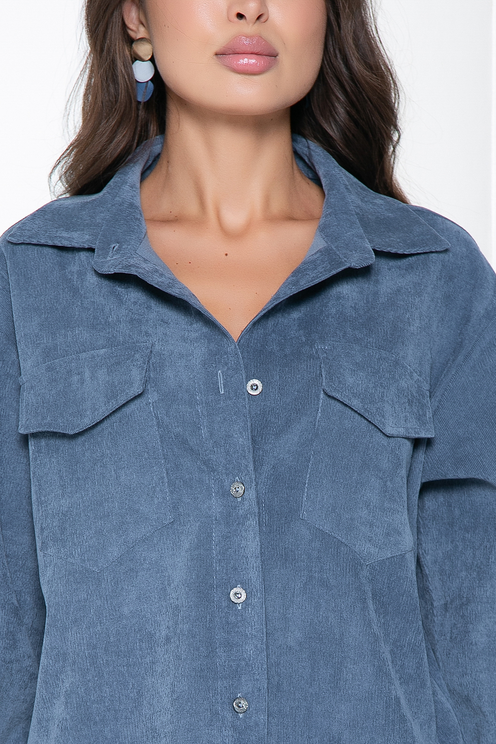 - Рубашка свободного кроя с отложным воротничком, на пуговицах, на груди функциональные карманы с клапаном;
