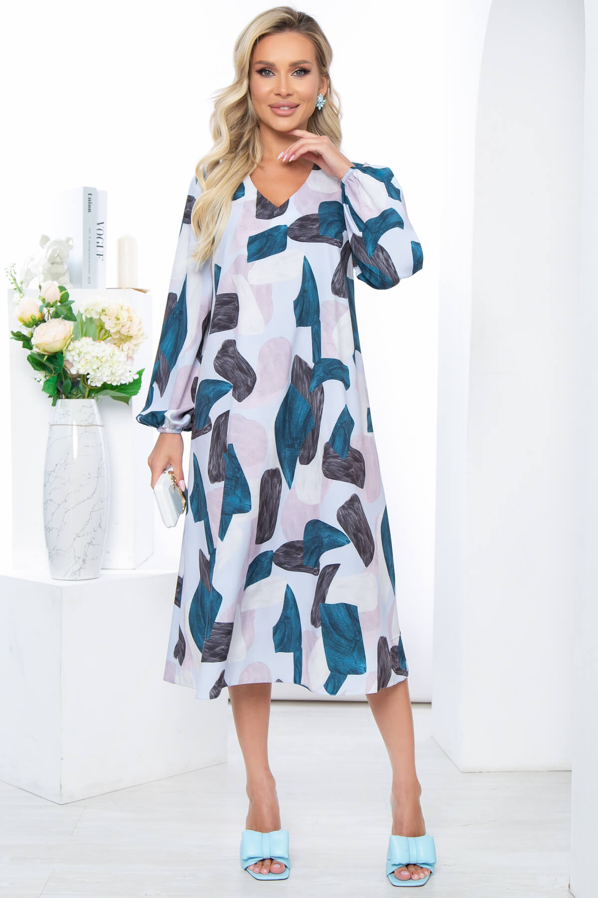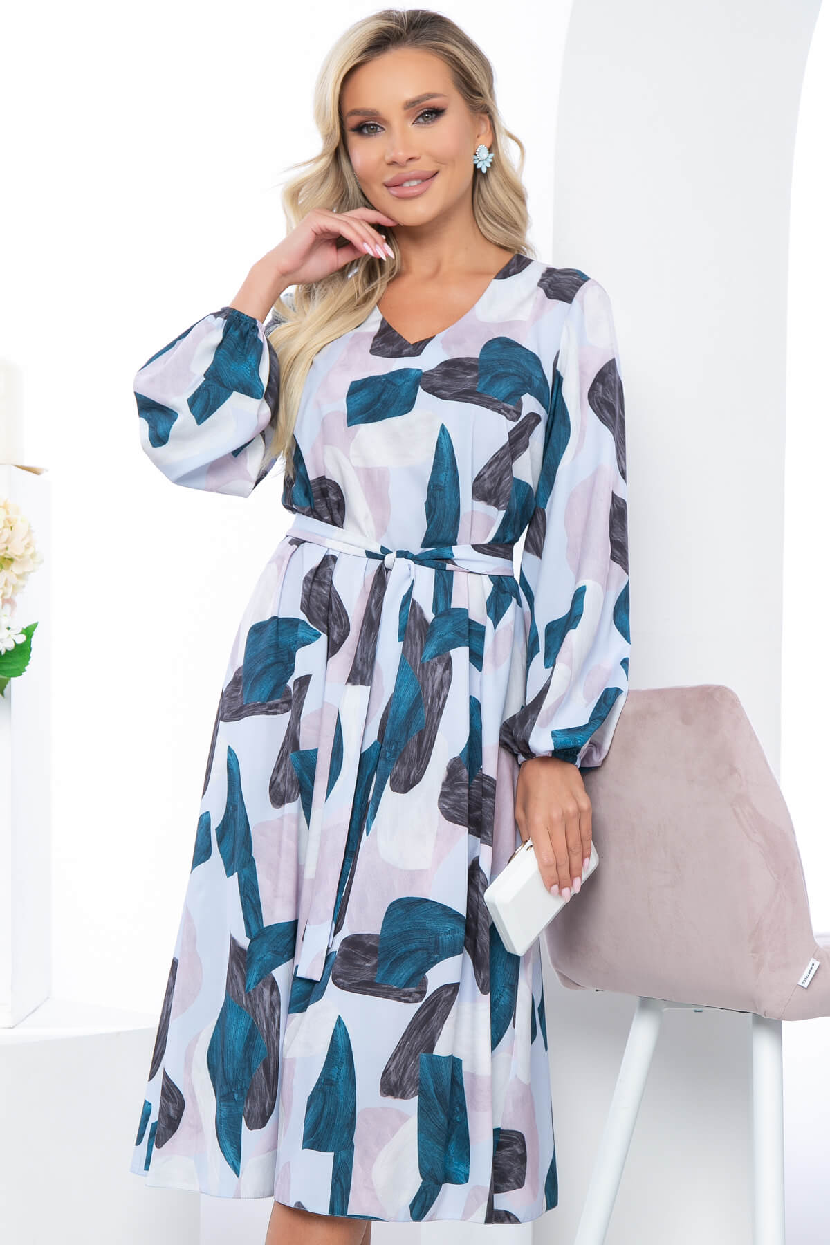 Струящееся платье идеально подчёркивающее Вашу женственность. Платье А-силуэта с красивым V-образный вырезом горловины красиво очертит зону декольте. Красивый пышный рукав на резинке. Пояс из основной ткани входит в комплект. Платье без подкладки.