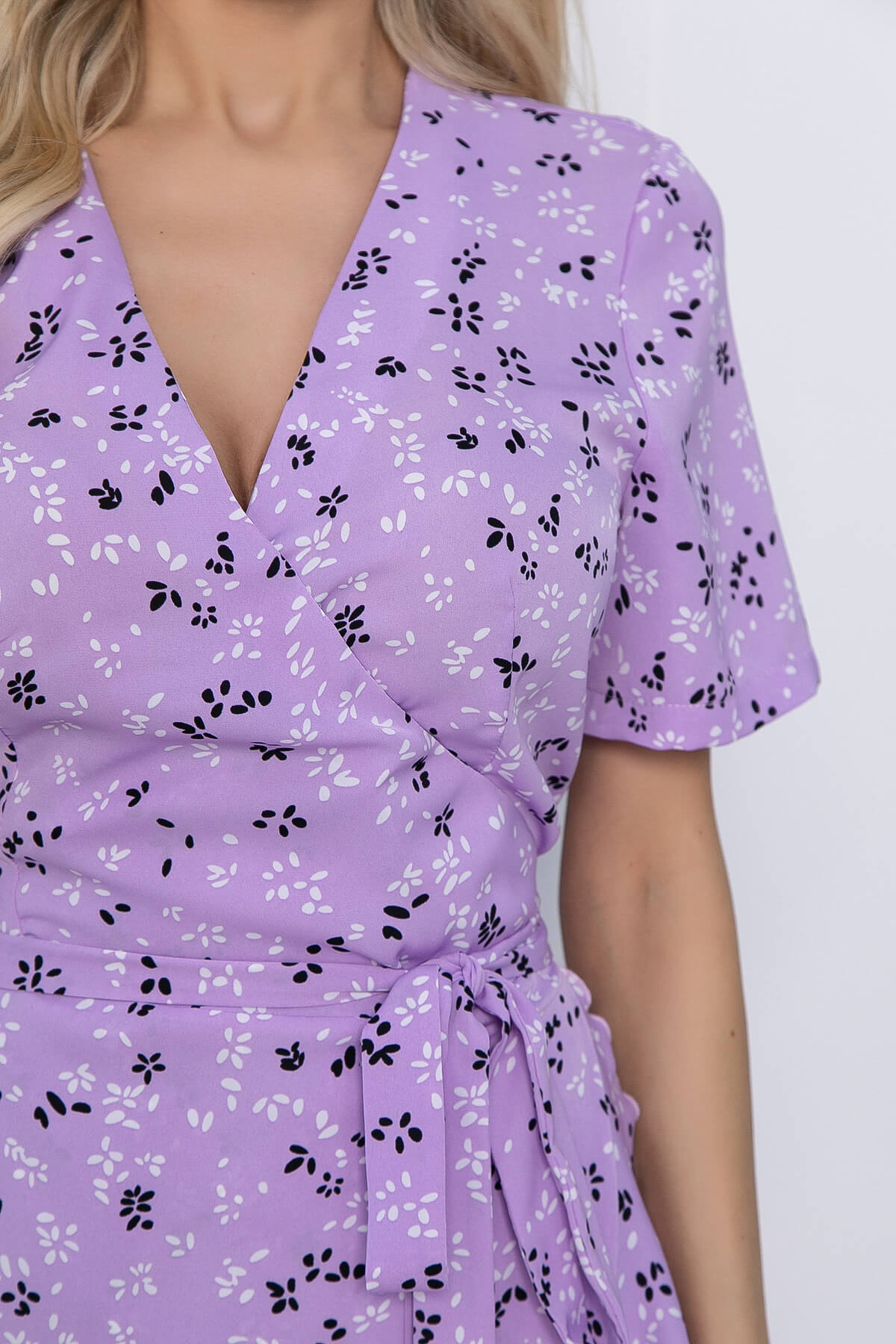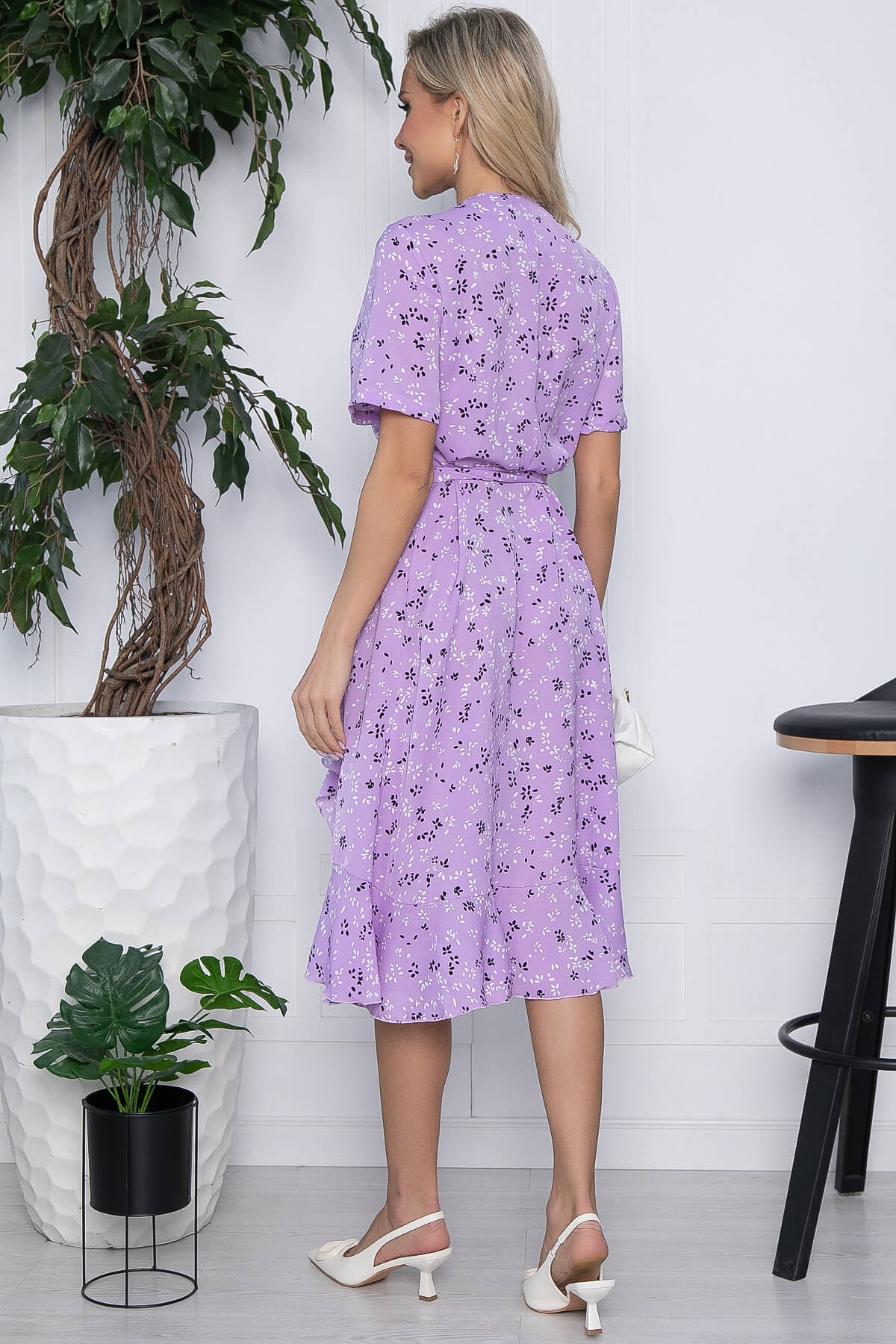 Платье миди идеально для жаркого лета! Волан по низу изделия и цветочный принт добавляют платью праздничный и нарядный вид. Оно идеально подойдет для девушек и женщин, которые хотят выглядеть стильно и модно. Платье скроено на запах, пояс позволяет регулировать запах, рукав втачной.