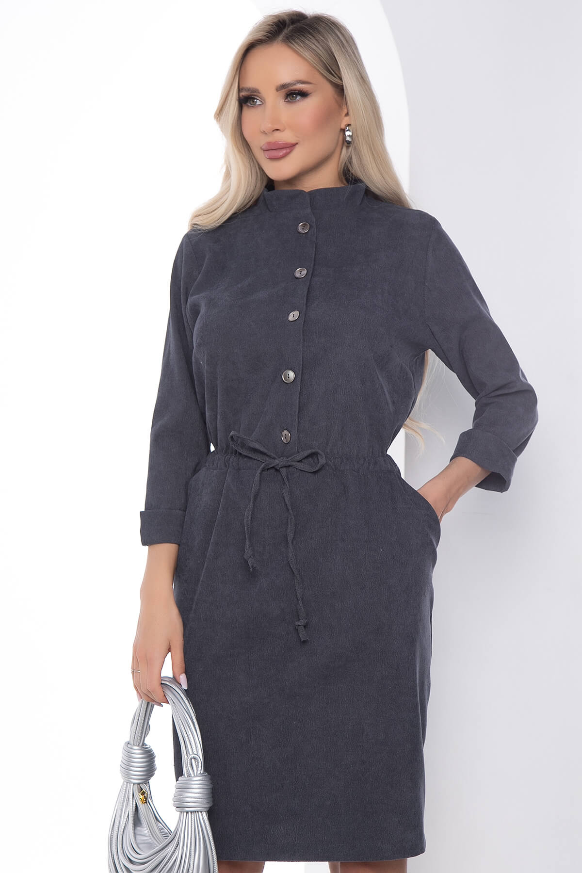 Платье из вельвета в стиле casual - универсальная модель на каждый день. Оно неприхотливо в уходе и выборе аксессуаров, но при этом является самодостаточным элементом образа. Платье прямого кроя, но можно подчеркнуть талию при помощи кулиски. Воротник-стойка. Рукав втачной, семь восьмых, на манжете. Талия - отрезная. В боковых швах есть карманы.