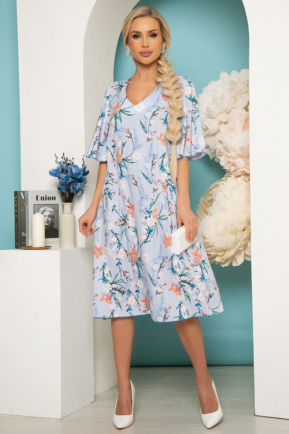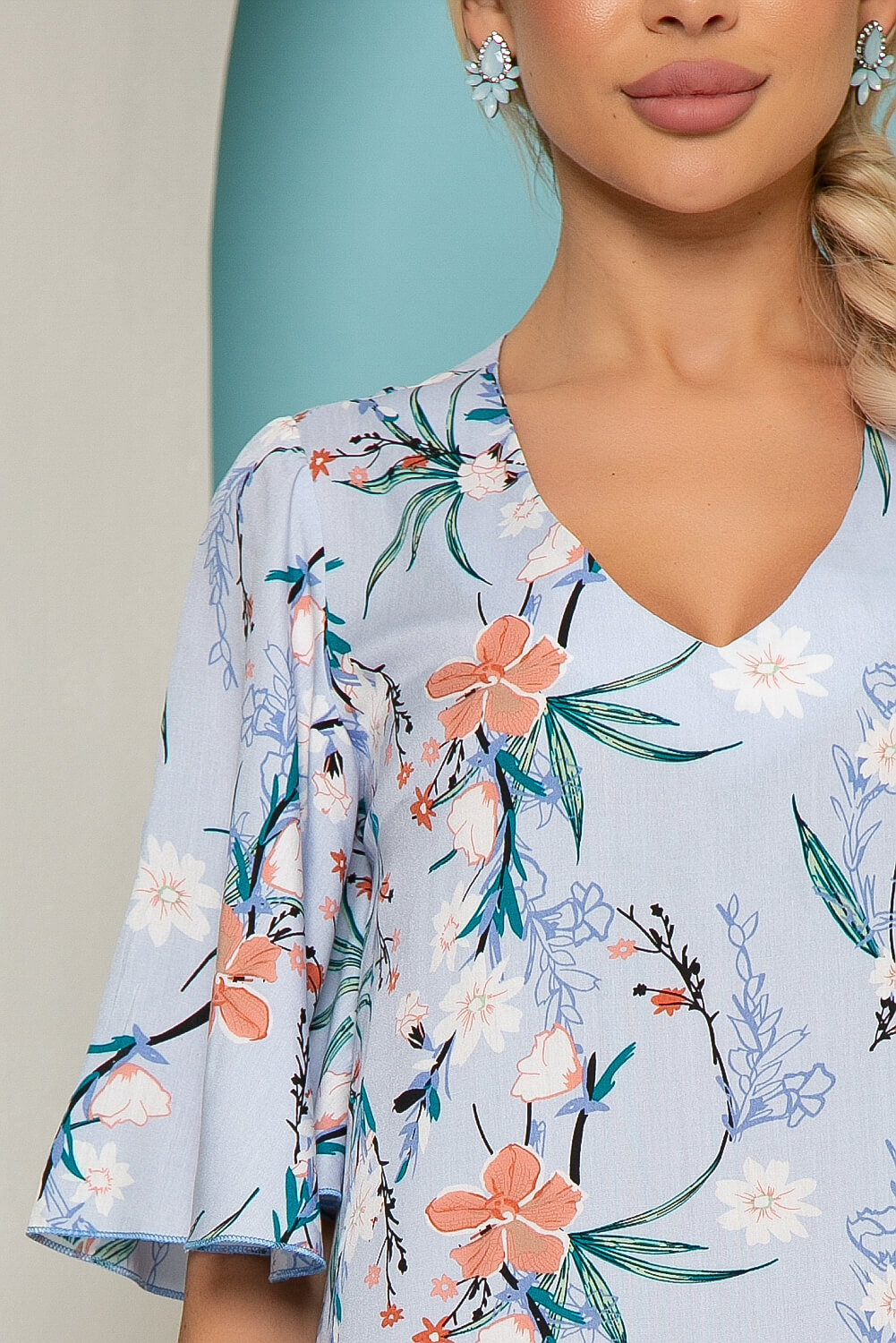 Платье свободного кроя с невероятно-нежным принтом из лёгкой хлопчатобумажной ткани. Изумительно смотрится как с каблучком, так и с босоножками! Женственный рукав-волан, V-образный вырез горловины. В комплекте пояс из основной ткани.