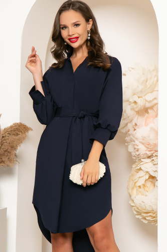 Оригинальное и очень эффектное платье, в котором Вы точно станете центром притяжения взглядов! Благодаря своему крою оно прекрасно "садится" на любом типе фигуры, скрывая её недостатки и подчёркивая достоинства. Платье идеально подойдёт в качестве создания утончённого образа деловой леди, а также для того, чтобы сделать Вас звездой вечера. Пояс из основной ткани входит в комплект.